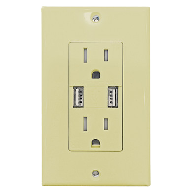 The Duplex USB Charger/Tamper Resistant Receptacle provides two 5 VDC-4A DC powered USB ports and two 15A-125VAC outlets. The USB ports are used to charge portable electronic devices ONLY (no data transfer capability).
